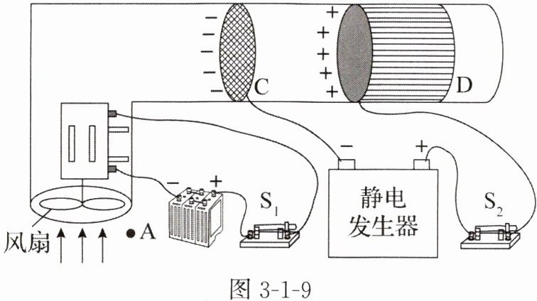 13. 雾霾天气的主要污染物是 PM2.5,PM2.5 是大气中直径小于或等于$2.5\ \mu m$的颗粒悬浮物,它们在空中做无规则运动,很难自然沉降到地面,吸入后会进入血液对人体造成危害。某大学的科研队伍成功研制出 PM2.5 净化器,其原理如图 3 - 1 - 9 所示。 (对应目标:913101,913103)