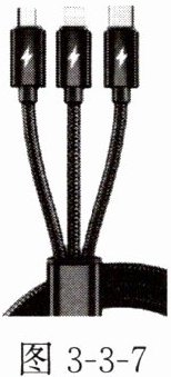 6. 常用的“一拖三”手机充电线如图 3 - 3 - 7 所示,若将其 USB 插头连入电路同时为三部手机充电,则三部手机的连接方式是