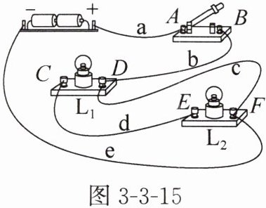(1)小刚连接了如图 3 - 3 - 15 所示的电路,如果合上开关,两个灯泡都将