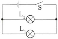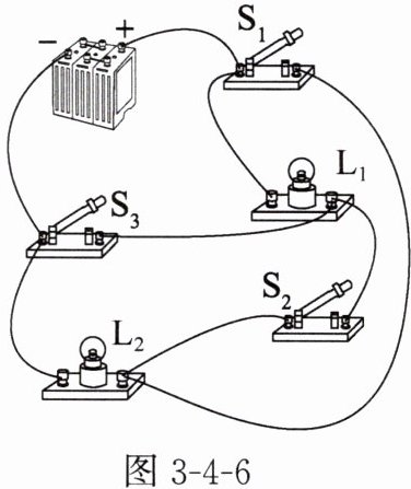 3. 如图 3 - 4 - 6 所示的电路中,若要使 $ L_1 $、$ L_2 $ 并联,则应该(