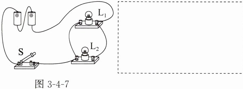 4. 请根据如图 3 - 4 - 7 所示实物图,在虚线框内画出对应的电路图。