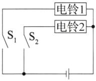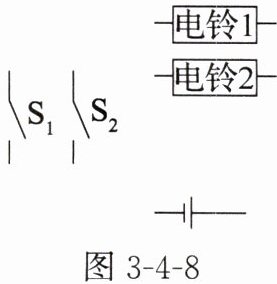 5. 九年级的志愿者想为敬老院的老人设计一个呼叫电路,他们的设想是同一房间内的两位老人每人单独控制一只电铃,值班室的工作人员能够根据电铃区分出是哪位老人呼叫的。请将如图 3 - 4 - 8 所示的电路原理图补充完整。(对应目标:913401)