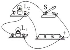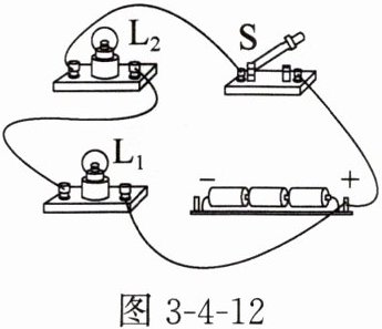 9. 在如图 3 - 4 - 12 所示的电路中要求只添加一根导线,使灯 $ L_1 $ 和 $ L_2 $ 并联,开关 $ S $ 只控制灯 $ L_2 $。(对应目标:913401)
