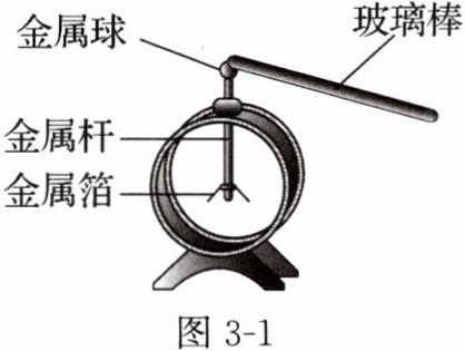 1. (四川巴中中考)用丝绸摩擦过的玻璃棒接触不带电的验电器,金属箔张开,如图 3 - 1 所示。下列说法正确的是(