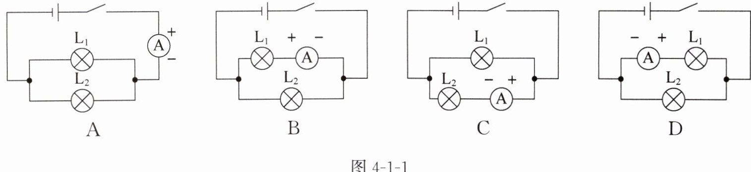 2. 如图4-1-1所示,能直接测量出通过L₁电流的电路是(