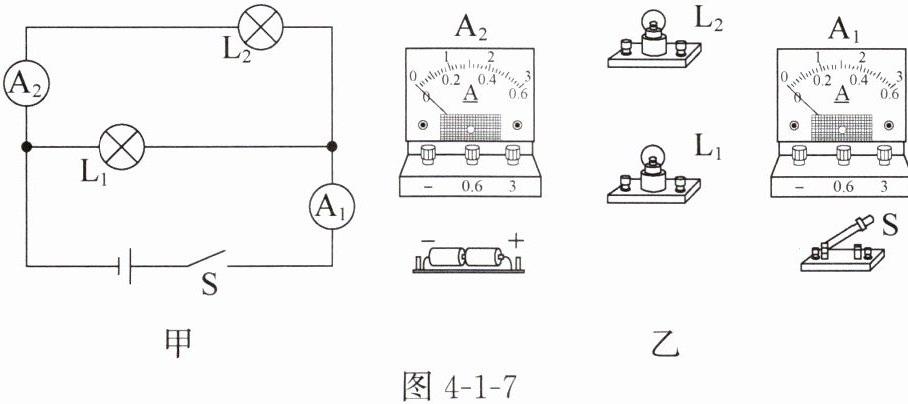 8. 请根据图4-1-7甲所示的电路图连接图4-1-7乙所示的实物图。(电流表均选择小测量范围)(对应目标:914103)