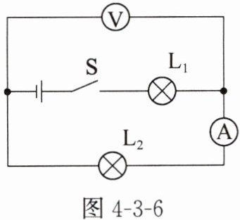 8. 如图4-3-6所示的电路中,电源电压为3V。闭合开关S后,L₁、L₂两灯均发光,两电表均有示数,电压表示数为1.2V,则灯泡L₁两端的电压为