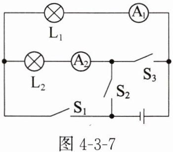 9. 如图4-3-7所示的电路中,当仅闭合开关S₁、S₃时,灯泡L₁、L₂是