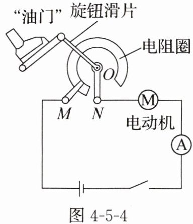4. 电动汽车“油门”模拟图如图4-5-4所示。脚往下踩“油门”时,滑片绕O点在电阻圈上逆时针转动,此时接入电路的电阻变