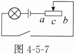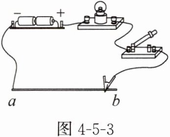3. 如图4-5-3所示,ab为一根铅笔芯,闭合开关后,小灯泡发光,将夹子在铅笔芯上向左移动时,观察到小灯泡变
