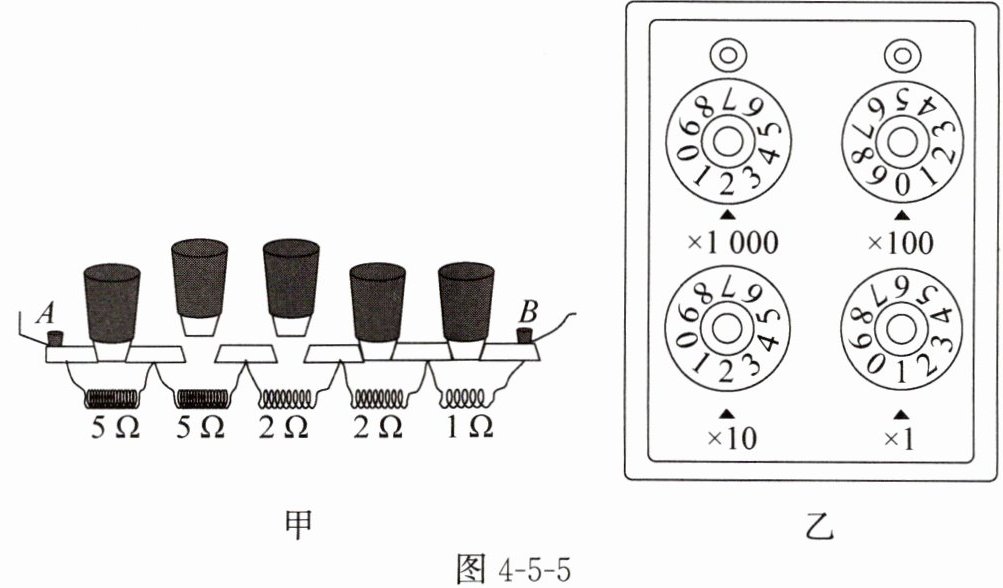 5. 插入式电阻箱的结构示意图如图4-5-5甲所示,A、B两个接线柱之间的电阻值为