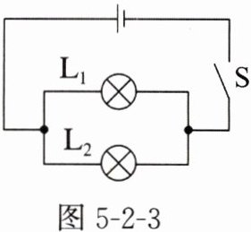 8. 小波在实验时连接了如图 5 - 2 - 3 所示的电路,闭合开关$S$后发现$L_{1}$比$L_{2}$亮,通过测量他发现两个灯泡两端电压$U_{1}$