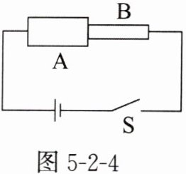 9. 电阻丝$A$和$B$的材料、长短都相同,粗细不同,将它们按如图 5 - 2 - 4 所示连入电路,则它们的电阻$R_{A}$