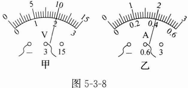 8. 在测量小灯泡电阻的实验中,正确连接电路并闭合开关后,电压表和电流表的示数分别如图5-3-8甲、乙所示,则通过小灯泡的电流是