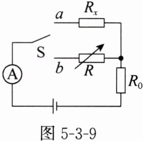 9. 用图5-3-9所示的电路图测量未知电阻的阻值,其中Rₓ为待测电阻,R为电阻箱,S为单刀双掷开关,a、b为两个触点。实验中应先把开关S打到