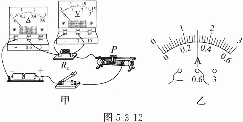 12. 某实验小组在做“伏安法测电阻”的实验中,设计并连接了如图5-3-12甲所示的电路。(对应目标:915301,915302)