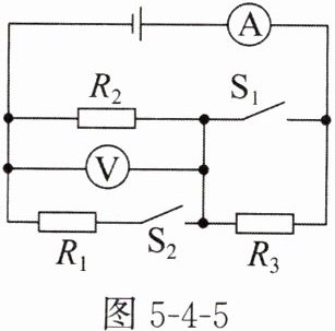 9. 如图 5 - 4 - 5 所示的电路中,已知电源电压为 $ 9 V $,三个电阻的阻值分别为 $ R_1 = 3 \Omega $、$ R_2 = 6 \Omega $和 $ R_3 = 3 \Omega $。求:(对应目标:915402)