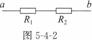 4. 如图 5 - 4 - 2 所示,$ a $、$ b $ 间电压保持不变,$ R_1 = 30 \Omega $,当 $ R_1 $ 短路时,总电流增大到原来的 $ 4 $ 倍,则 $ R_2 $ 应是(