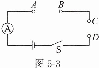3. (新疆中考)如图 5 - 3 所示的电路,电源电压保持不变,滑动变阻器和小灯泡两个元件中,一个接在 A、B 两点之间,另一个接在 C、D 两点之间。闭合开关 S,电流表的示数为 0.20 A,用电压表测得 A、B 两点间的电压为 1.8 V,C、D 两点间的电压为 1.2 V;移动滑动变阻器的滑片,使电流表的示数变大,A、B 两点间的电压变为 1.5 V。已知小灯泡灯丝的电阻随温度的升高而增大,则此时滑动变阻器接入电路的电阻值可能为(