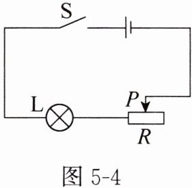 4. (湖南长沙中考)小明制作了一款可调亮度的小台灯,电路如图 5 - 4 所示。电源电压保持不变,灯泡的电阻为 10 Ω,不考虑温度对灯丝电阻的影响,滑动变阻器标有“20 Ω 1 A”字样。