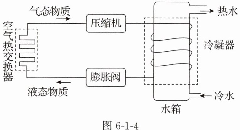 8. 某空气能热水器的工作原理图如图6-1-4所示,空气热交换器中发生的物态变化是
