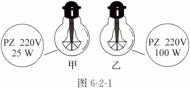 3. 甲、乙两只灯泡的铭牌如图 6 - 2 - 1 所示,下列说法正确的是(