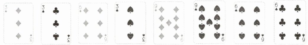 2. 分类整理下面的扑克牌,并把分类的结果记录下来。