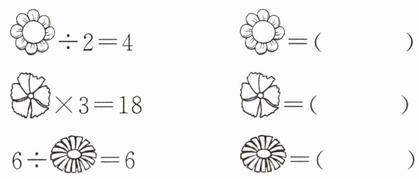3. 花朵盖住的数分别是几?在下面的括号里写出来。