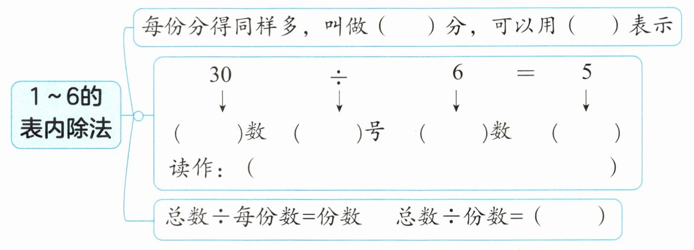 总数 ÷ 每份数 = 份数 总数 ÷ 份数 = ( )
