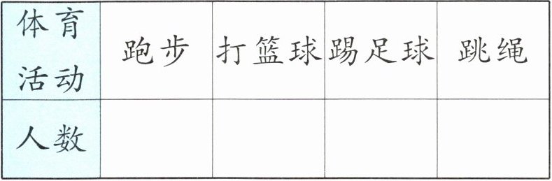 1. 下图是二(1)班部分同学最喜欢的体育活动调查情况。(每人都要选且只能选一种)