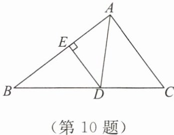 10. 如图,在$\triangle ABC$中,$AB = 4$,$AC = 3$,$BC = 5$,$AD是\triangle ABC$的角平分线,$DE\perp AB于点E$,求$DE$的长。