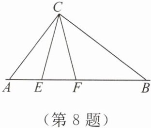 8. 【数学应用】台风是一种自然现象,它以台风中心为圆心在周围上百千米的范围内形成极端气候,有极强的破坏力。如图,有一台风中心沿东西方向AB由A向B移动,已知点C为一海港,且点C与直线AB上的两点A,B的距离分别为AC= 300km,BC= 400km,又AB= 500km,以台风中心为圆心周围250km及以内为受影响区域。