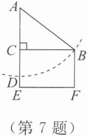 7. 如图,有一架秋千,当它静止在AD的位置时,踏板离地的高度DE为0.7m,将秋千AD往前推送4m(BC为4m),到达AB的位置,此时,秋千的踏板离地的高度BF为2.7m,秋千的绳索始终保持拉直的状态。