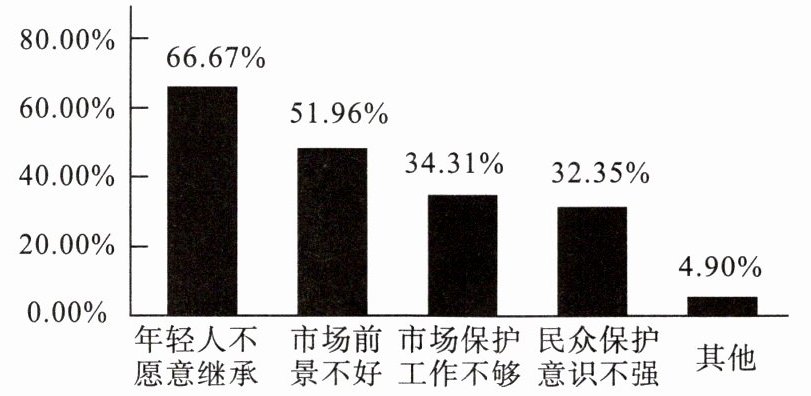 (3)请根据下面的“非物质文化遗产失传原因调查统计图”,提出三条保护非物质文化遗产的合理化建议。