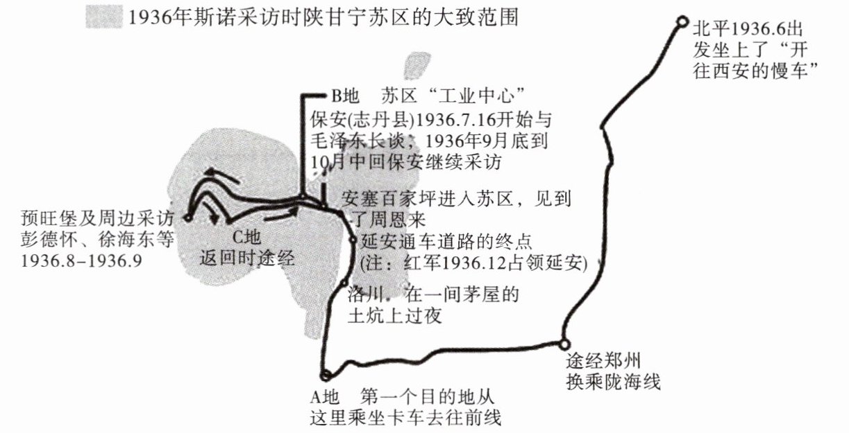 3. 下面是小语绘制的《红星照耀中国》中记者斯诺的行程图,请按要求完成相关任务。