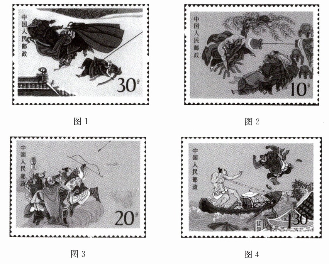 下列是中国邮政发行的《水浒传》邮票,请为其各添加一个标题。要求按照“人物+事件”的格式,如“鲁智深倒拔垂杨柳”。