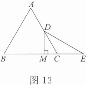 17. (16 分)如图 13,在等边三角形 ABC 中,D 是 AC 的中点,E 是 BC 延长线上的一点,且 CE = CD,过点 D 作 DM⊥BC 于点 M。