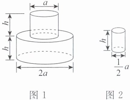解:瓶子的容积为$\pi·(\frac{1}{2}a)^{2}·h+\pi·a^{2}·h=\frac{5}{4}\pi a^{2}h$, 杯子的容积为$\pi·(\frac{1}{4}a)^{2}·h=\frac{1}{16}\pi a^{2}h$, 则需要杯子$\frac{5}{4}\pi a^{2}h÷\frac{1}{16}\pi a^{2}h=20$(个).