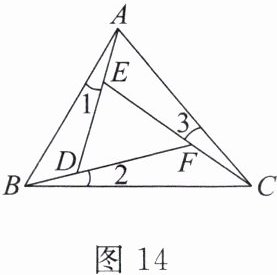 7. 如图14,在$\triangle ABC$中,$\angle 1 = \angle 2 = \angle 3$.