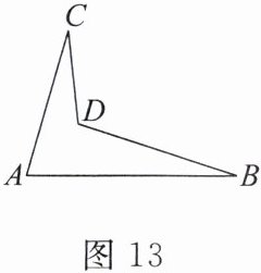 6. [生活情境]某种零件的形状如图13所示,按规定,合格的零件中,$\angle A = 75^{\circ}$,$\angle B = 18^{\circ}$,$\angle C = 22^{\circ}$.质检员小李量得一个零件的$\angle BDC = 114^{\circ}$,断定这个零件不合格.请你运用三角形的有关知识说明零件不合格的理由.