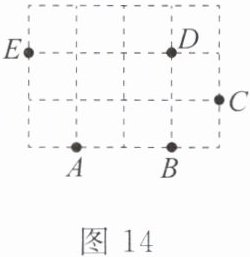8. 如图14,在方格图中有A,B,C,D,E五个格点,以这五个点中的任意三点为顶点画三角形.