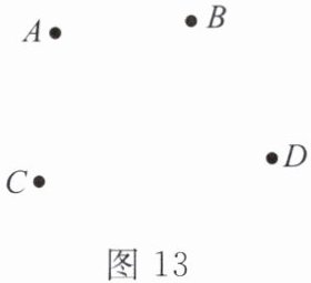 7. [教材第4页习题13.1第5题变式]如图13,A,B,C,D任意三点不在同一条直线上,以这四点中的任意三点为顶点可以组成多少个三角形?在图中画出来,并用符号表示这些三角形.