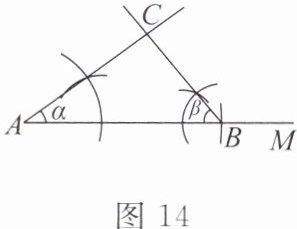 3. 图14是用直尺和圆规作$\triangle ABC$的作图痕迹,则此作图的已知条件是(