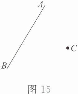 4. [生活情境]人勤不负好春光,春耕备耕正当时.如图15,某农田中有一条笔直的灌溉渠$AB$,点$C$是农田外的一个水源,现要过水源点$C修一条新灌溉渠CD$,使$CD与AB$平行.请在图中用直尺和圆规画出新灌溉渠$CD$.