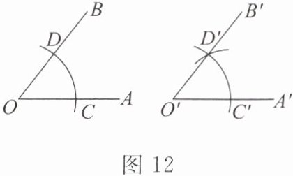1. 如图12,用直尺和圆规作$\angle A'O'B'= \angle AOB$,下列对作图过程的描述错误的是(