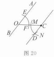 解:如图20,直线CD就是所求作的新灌溉渠.