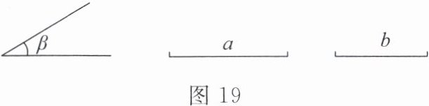 8. 如图19,已知$\angle\beta和线段a$,$b$,用直尺和圆规作$\triangle ABC$,使$\angle B= \angle\beta$,$BC= a$,$AC= b$,这样的三角形能作几个?根据这次作图,你能得到什么结论?(不写作法,保留作图痕迹)