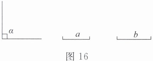 5. 如图16,已知线段$a$,$b$,$\angle\alpha=90^{\circ}$,用直尺和圆规作一个直角三角形,使其两条直角边分别等于已知线段$a$,$b$.(不写作法,保留作图痕迹)
