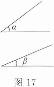 6. 如图17,已知$\angle\alpha和\angle\beta$.用直尺和圆规作$\angle AOB$,使$\angle AOB= 2\angle\alpha-\angle\beta$.(保留作图痕迹,不写作法)