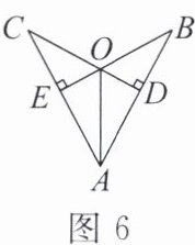 8. 如图 6,$CD \perp AB$,$BE \perp AC$,垂足分别为$D$,$E$,$BE$,$CD相交于点O$。若$AB = AC$,则图中全等的直角三角形的对数是(